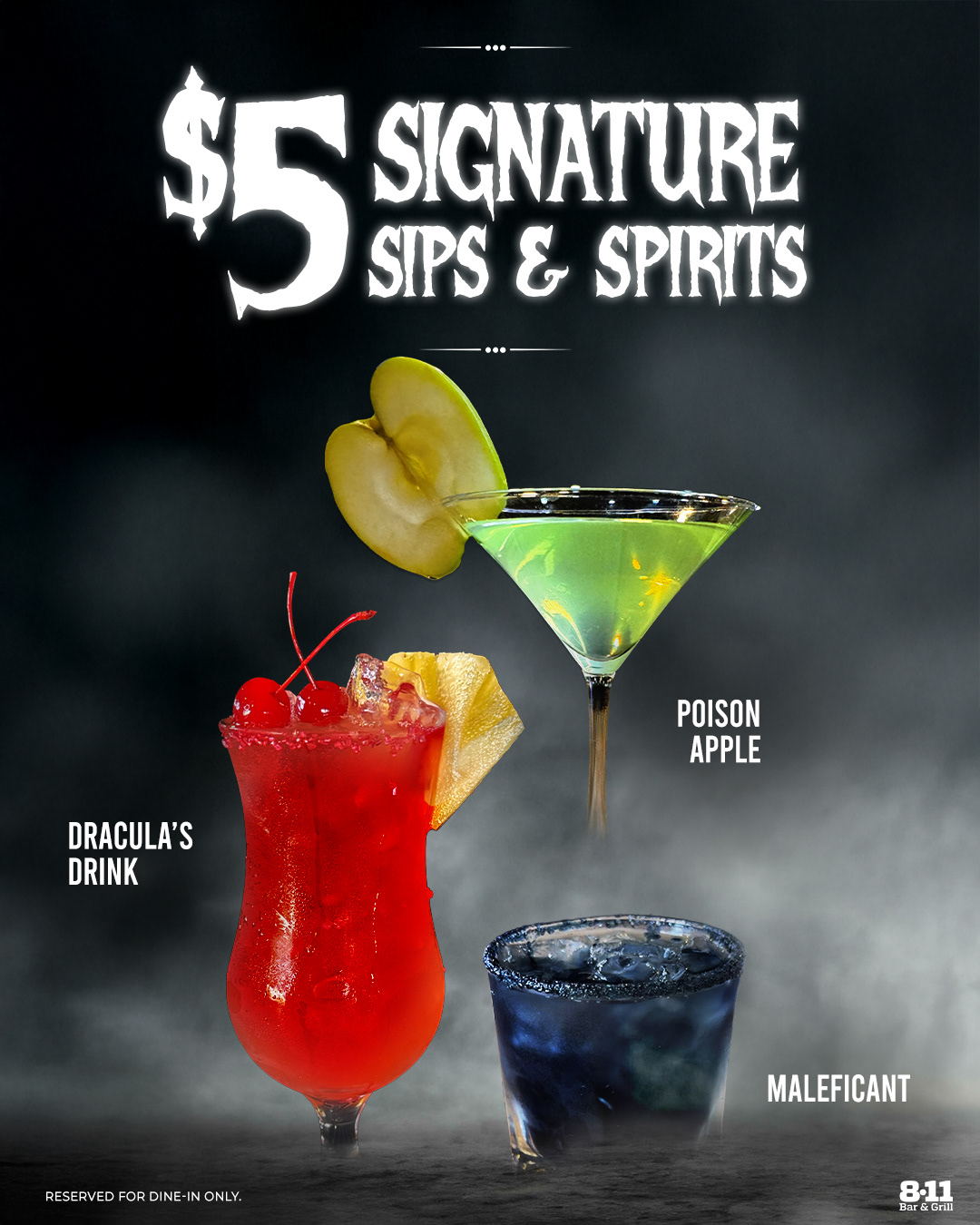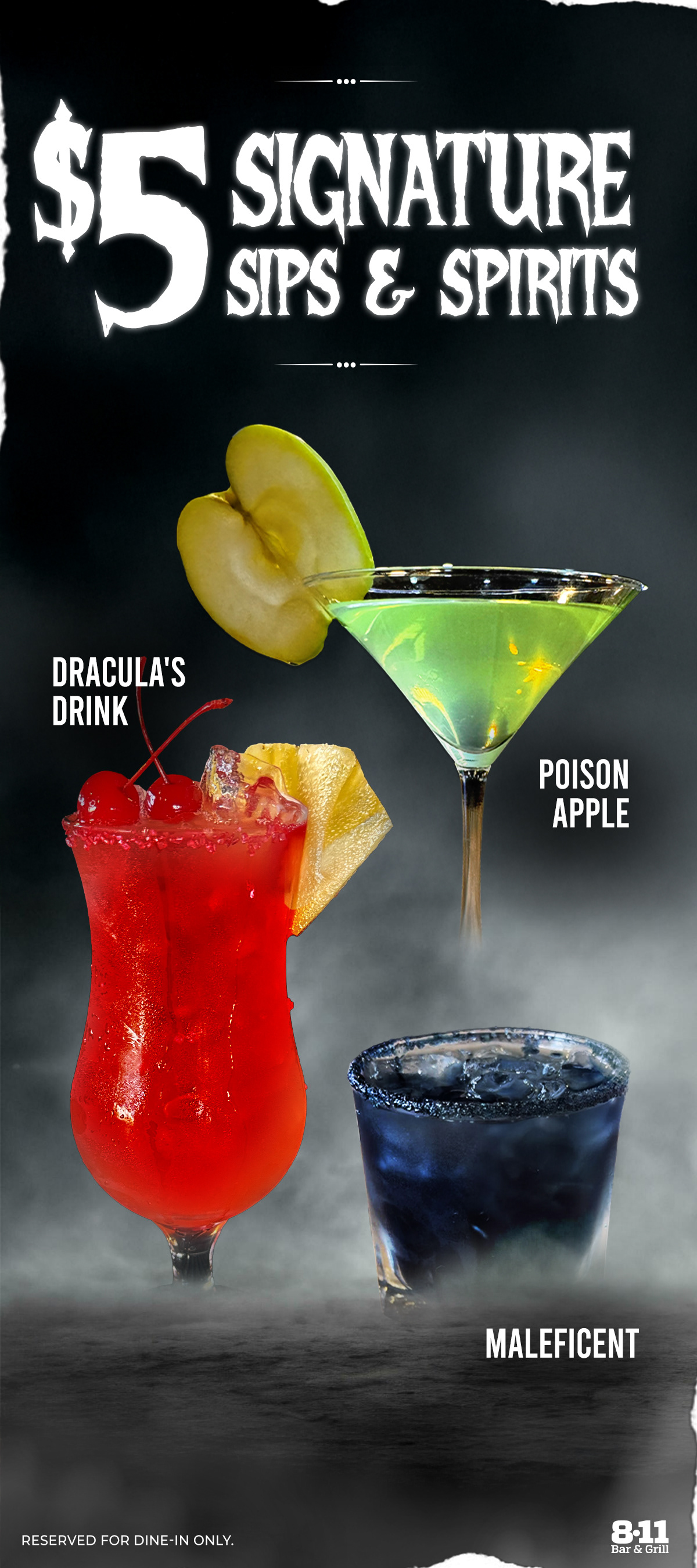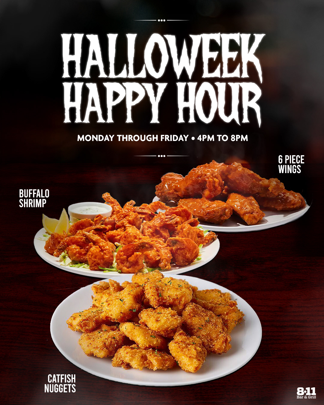 Halloweek was a week-long seasonal campaign for 811 Bar & Grill promoting limited-time drink specials through a coordinated mix of email marketing, social media graphics, and in-venue print materials. The campaign focused on building anticipation and urgency while maintaining a cohesive visual tone across digital and physical touchpoints to drive in-person traffic.