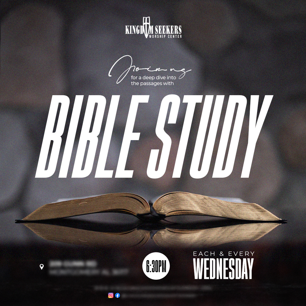 A social media graphic created to promote weekly Bible study gatherings and encourage community participation.