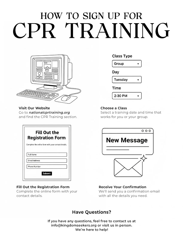 Kingdom Seekers is a community-focused organization offering a variety of events and resources, from Bible studies to CPR training. This project showcases a range of promotional materials designed to engage the community, including social media posts, event banners, and an instructional infographic.